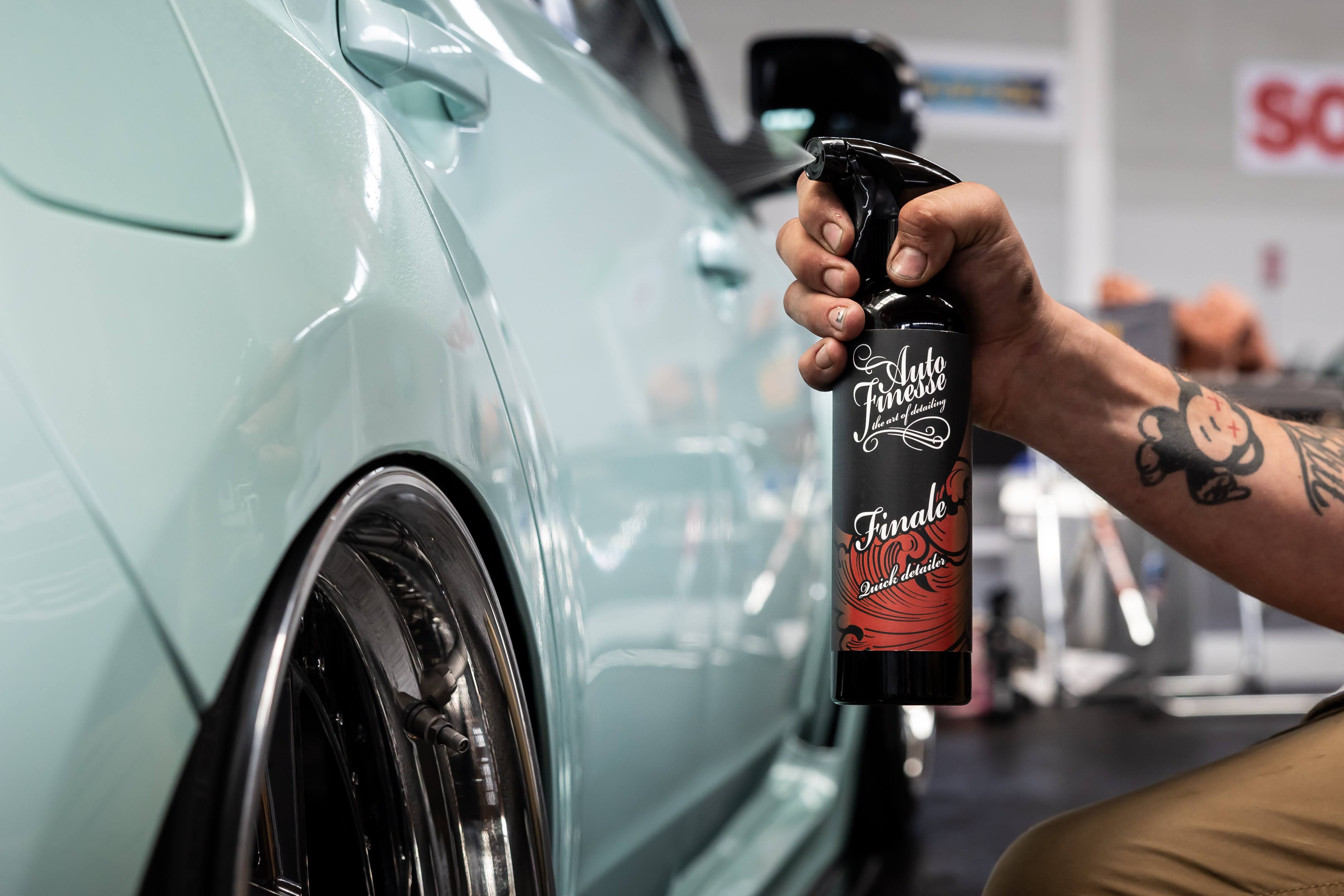 Finale ist das Produkt Nr. 1, nach dem wir bei Shows immer greifen, wenn wir unseren eigenen Fuhrpark vorbereiten. Die leichte Reinigungskraft reicht gerade aus, wenn wir vielleicht mit dem Auto zur Veranstaltung fahren müssten. Die Gleitfähigkeit stellt sicher, dass wir die Oberfläche nicht beschädigen oder zerkratzen und es verleiht dem Lack zusätzlichen Glanz für ein atemberaubendes Finish.