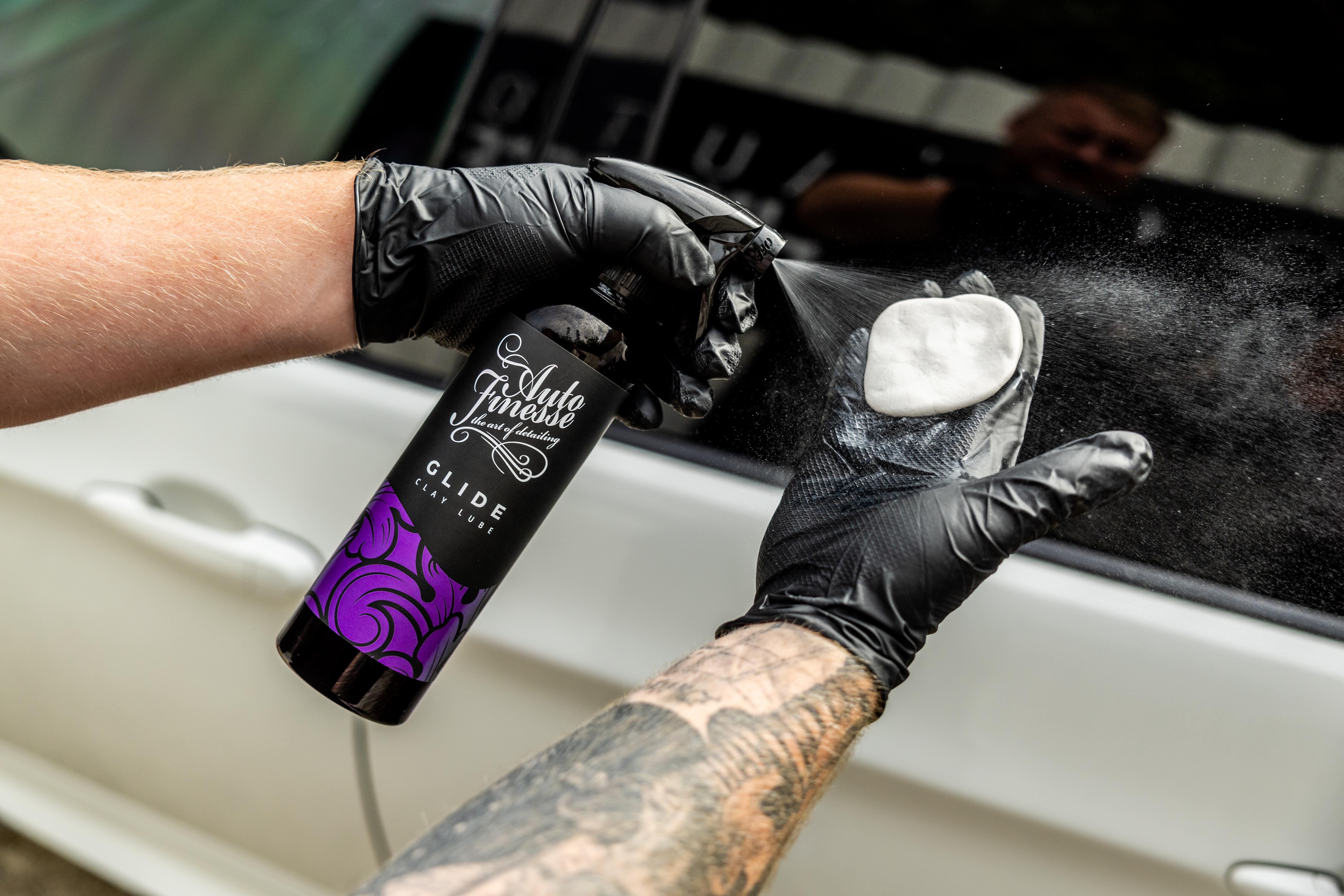 Glide arbeitet Hand in Hand mit dem Fine Detailing Clay Bar. Die Kombination beider Produkte verleiht Ihrem Lack, Glas und Ihren Felgen ein „glasglattes“ Finish.