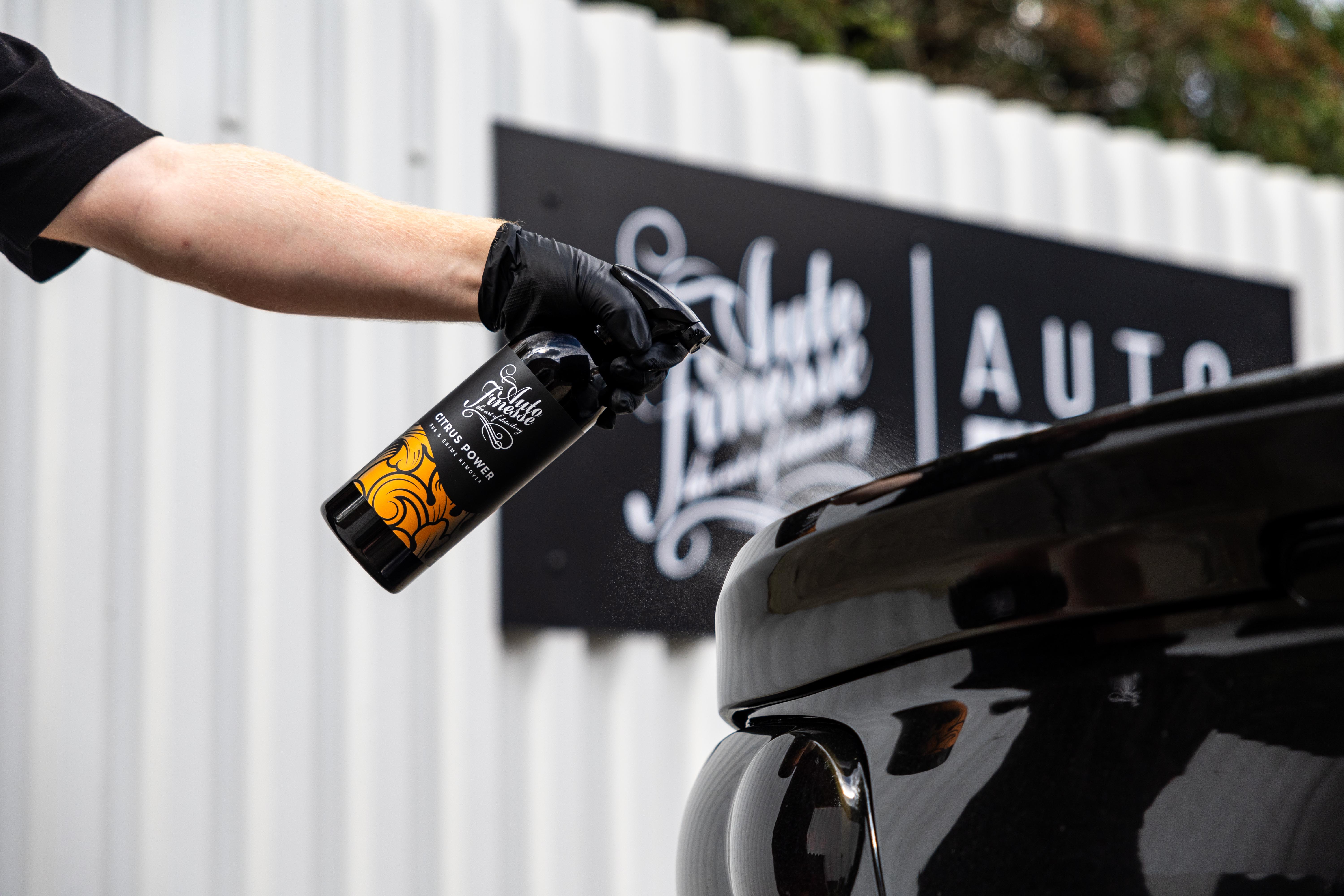 Entfernt ölbasierte Verschmutzungen und Flecken und eignet sich daher zum leichten Entfetten von Automotorräumen, Tankklappen, Motorradmotoren und sogar lackierten Türpfosten und Motorhauben-/Heckklappenverschlüssen. Einfach großzügig aufsprühen und mit einer Detailing-Bürste leicht einarbeiten.