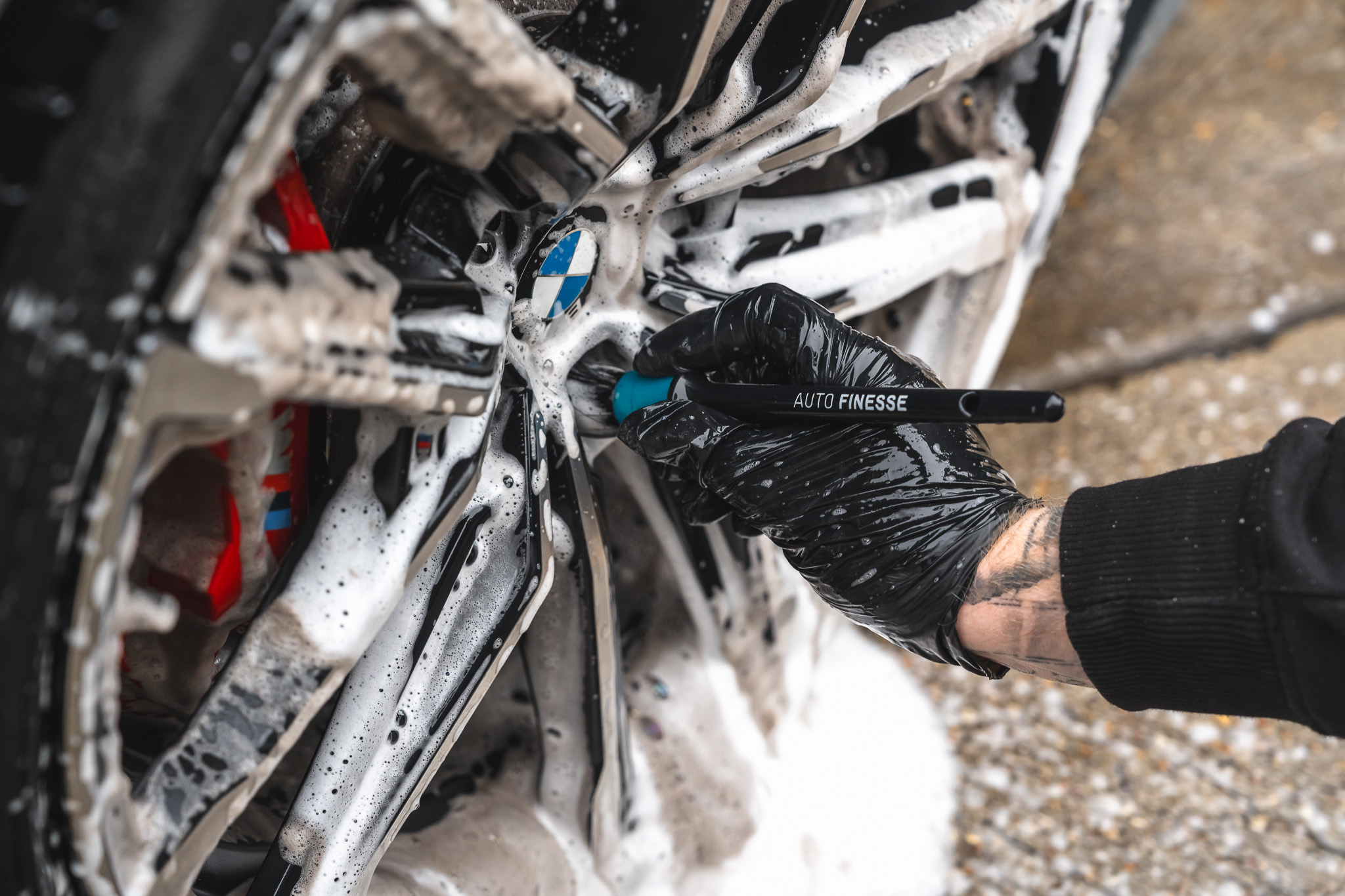 Der säurefreie Imperial Felgenreiniger ist für die regelmäßige und risikofreie Anwendung auf allen lackierten, pulverbeschichteten oder klarlackierten Oberflächen geeignet und kann sogar als Vorreiniger oder als einfacher Sprüh- und Spülreiniger bei leichten bis mittleren Verschmutzungen eingesetzt werden. Für optimale Ergebnisse bei starker Verschmutzung kann Imperial auch mit geeigneten kratzfesten Bürsten – wie unserer Rundbürste , Detailbürsten oder Schweinehaarbürsten – für eine intensive Tiefenreinigung bedenkenlos eingearbeitet werden. Dabei dient das Einarbeiten nicht so sehr dem mechanischen Abschrubben von Verunreinigungen, sondern vielmehr dazu, sicherzustellen, dass die Lösung in alle Bereiche eingearbeitet wird und verbrauchtes Produkt (die Imperial-Lösung kapselt bereits Partikel und Fett ein) entfernt wird, sodass der Bereich mit frischer Lösung aufgefüllt werden kann, um verbleibende Verunreinigungen zu beseitigen. Den vollständigen Reinigungsprozess sowie Tipps zu verschiedenen Felgentypen und -oberflächen finden Sie in unserem Felgenreinigungsleitfaden