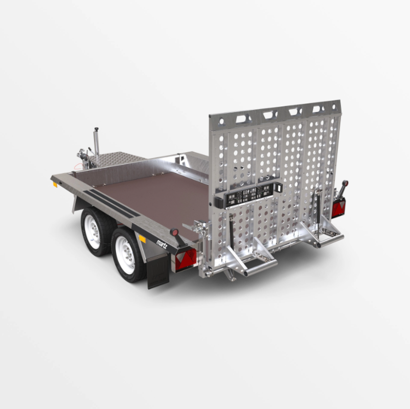 Es besteht die Möglichkeit, die breite Unterfahrrampe durch zwei Unterfahrrampen zu ersetzen, wodurch das Gewicht des Anhängers verringert und die Nutzlast erhöht wird.